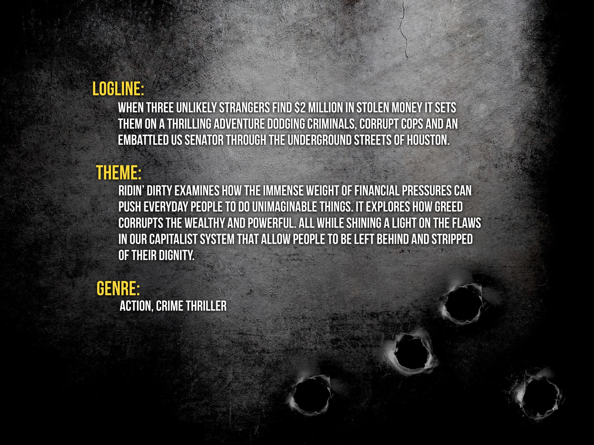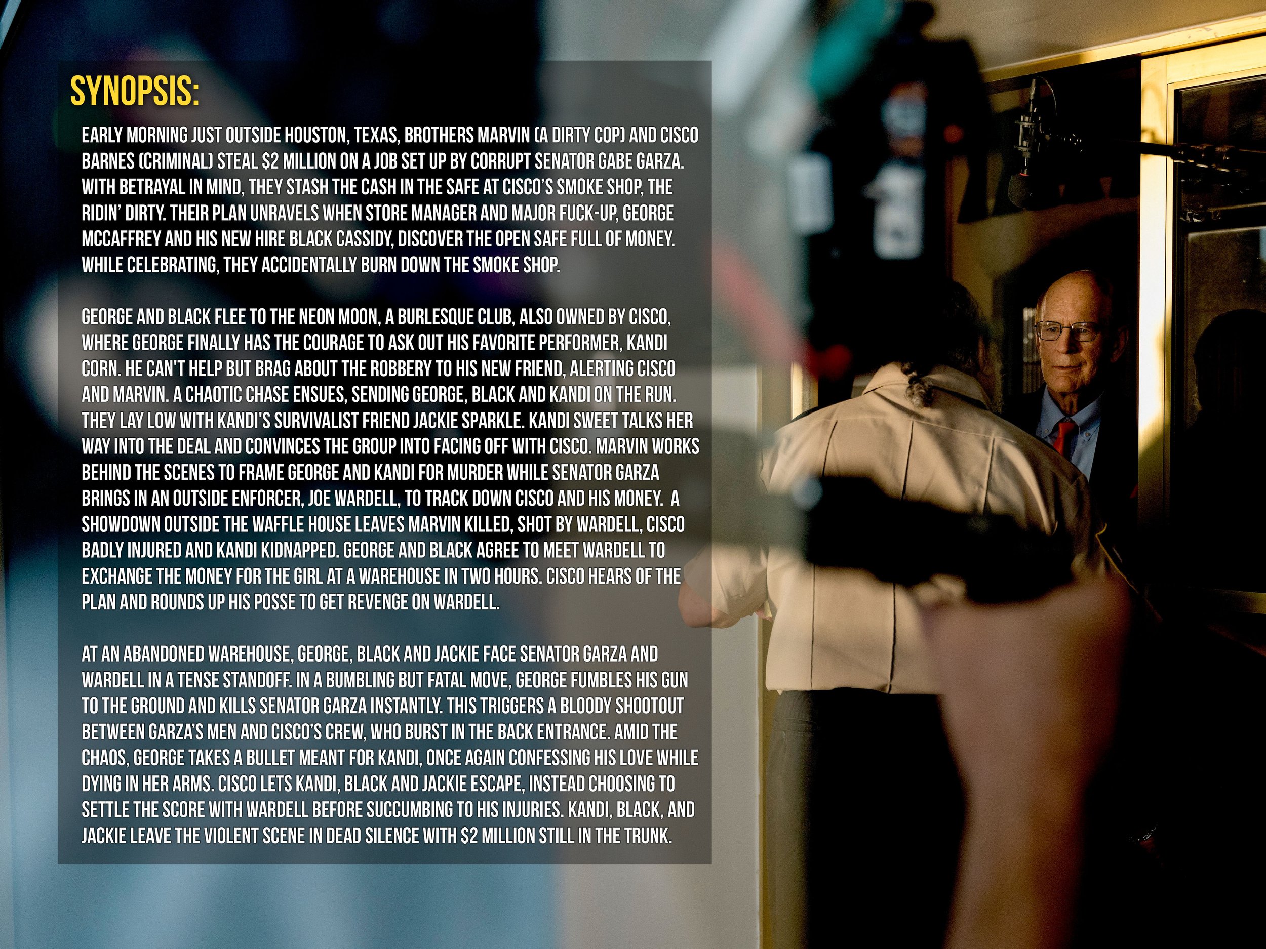 When three unlikely strangers find $2 million in stolen money it sets them on a thrilling adventure dodging criminals, corrupt cops and an embattled US Senator through Houston’s underground. Will they survive the night?